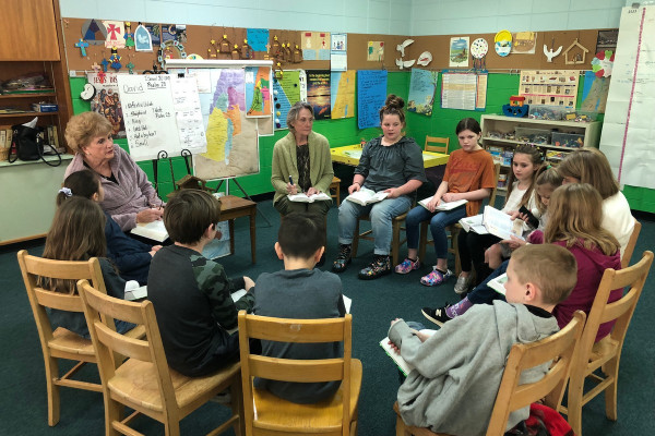 They sit in a circle, surrounded by Bible stories made just for them, with all materials at their height. Everything in this special place is accessible to the children. The storyteller leads the children in a time of singing and praise. This coming together of the children follows the first order of worship, which is the gathering of God's people.